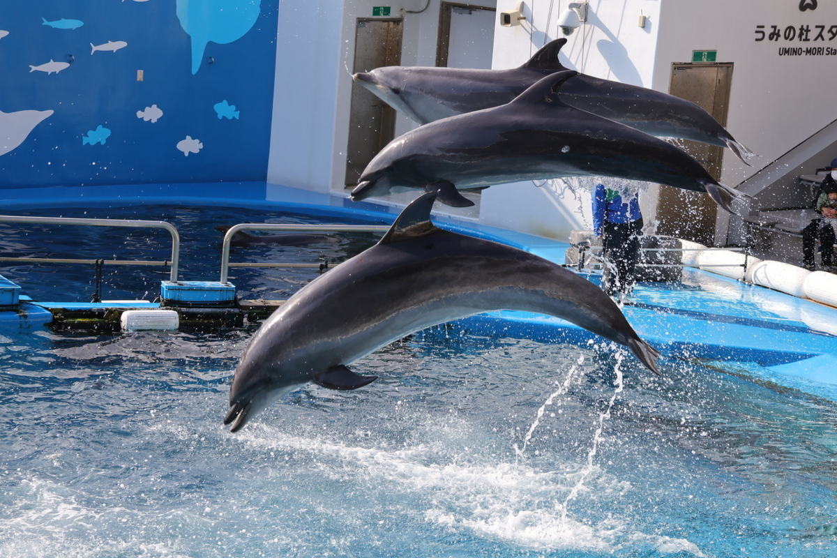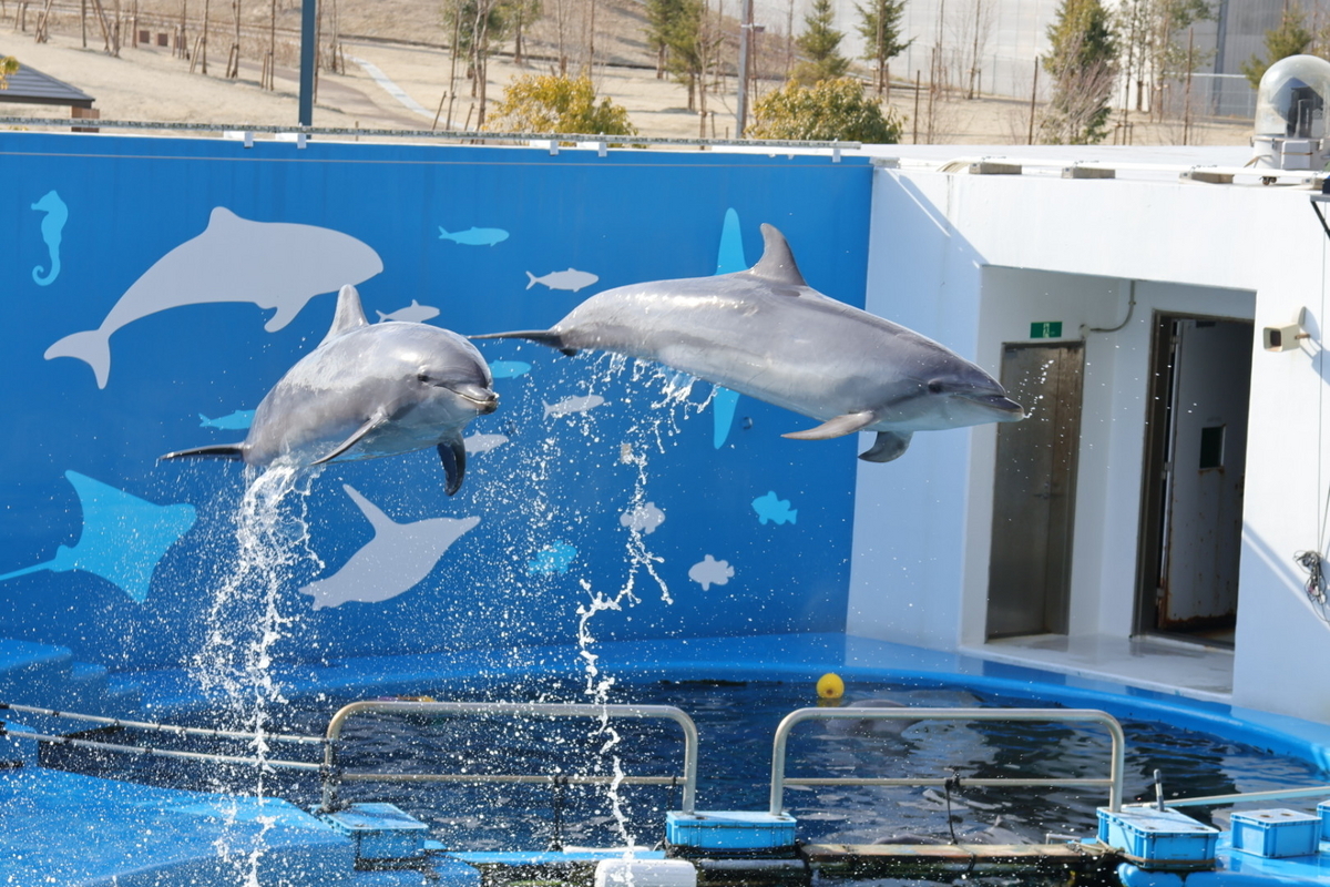 魚とイルカが一緒に入った水槽はなかなか見られないので、これは貴重ですね。