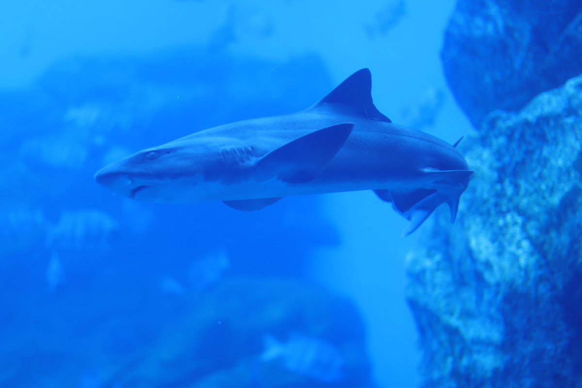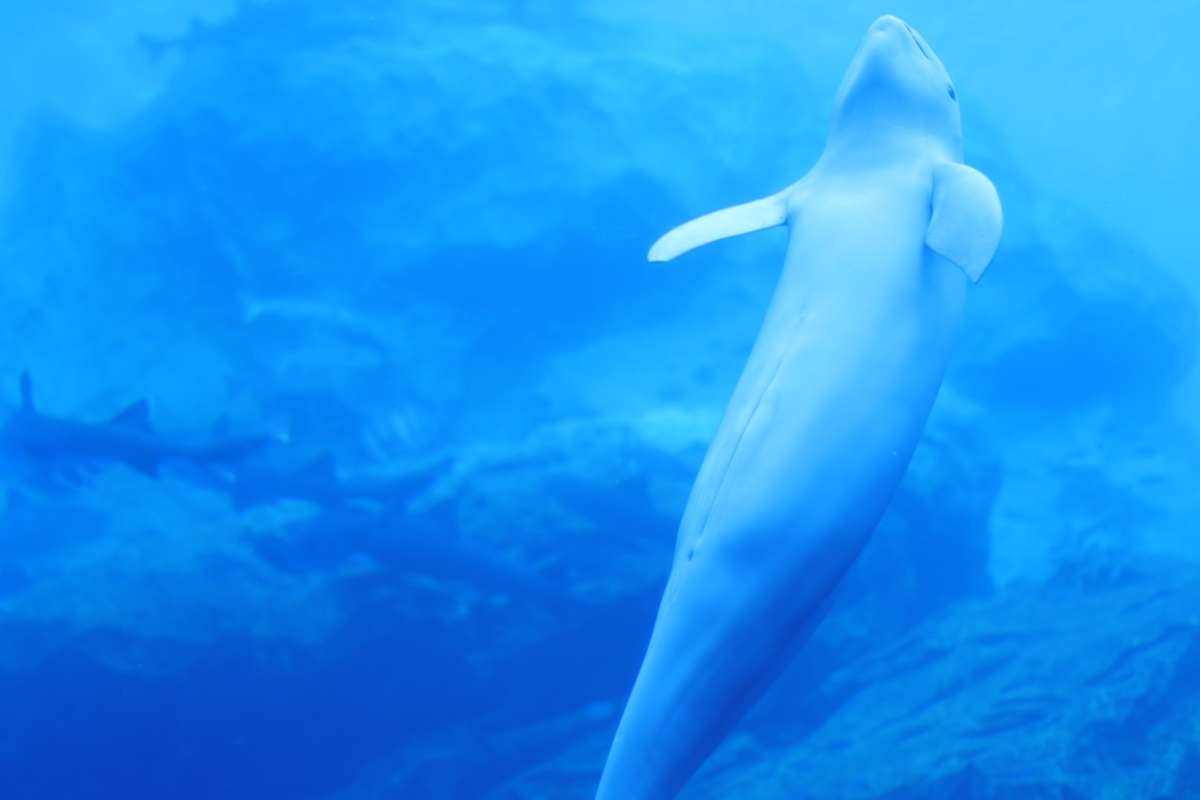 魚やサメ、そしてイルカの仲間であるスナメリまで一緒に入った水槽です。