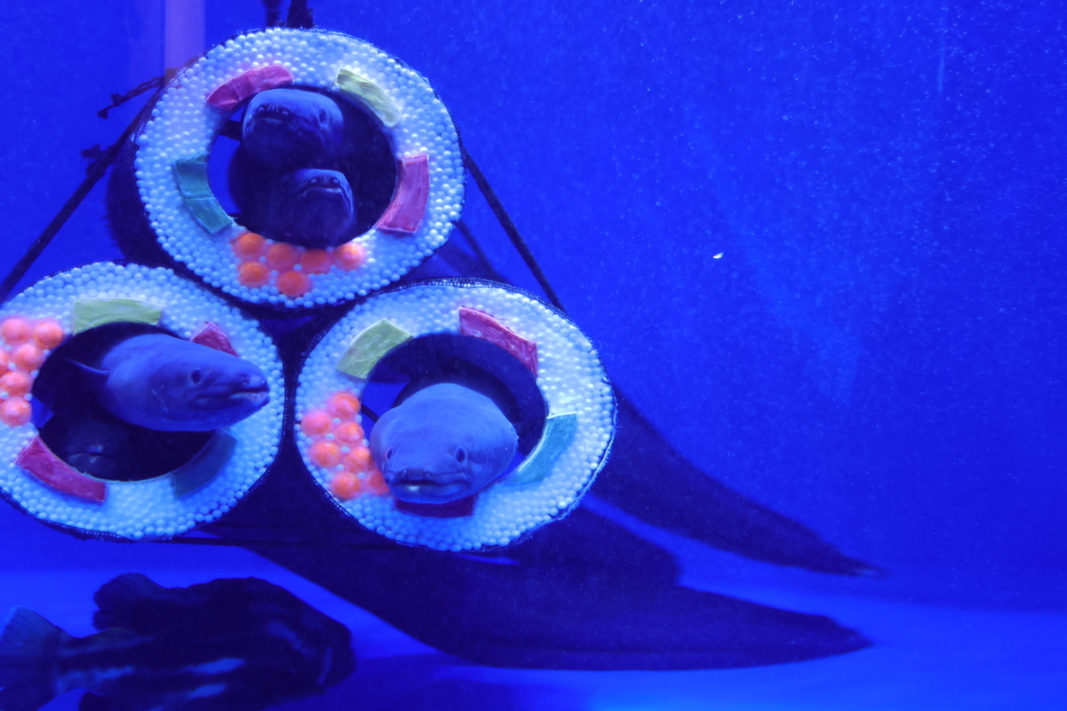 行った時期がちょうど節分に近かったということもあり、うみの杜水族館名物であるアナゴ恵方巻を見られました!